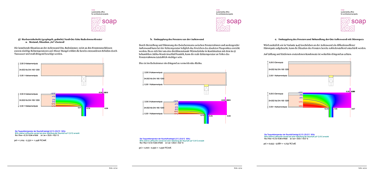 Badezimmer kam es am sehr ungünstig ausgeführten Fensteranschluß zu Außenwand und Attika (dreidimensionale Wärmebrücke) gelegentlich zu Tauwasserbildung.