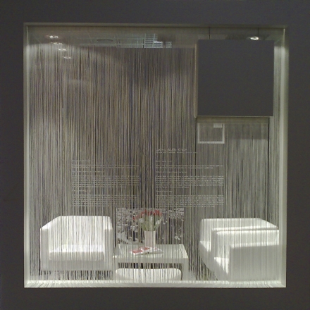 Die Installation beinhaltete ein integrales Set von Fensterständern, Informationsflächen und Aufbewahrungsmöglichkeiten, aber auch eine Bar, eine Lounge, sowie einen CAD-Demonstrationsplatz. Zum Messestand wurden auch eigens entwickelte Möbel angefertigt.